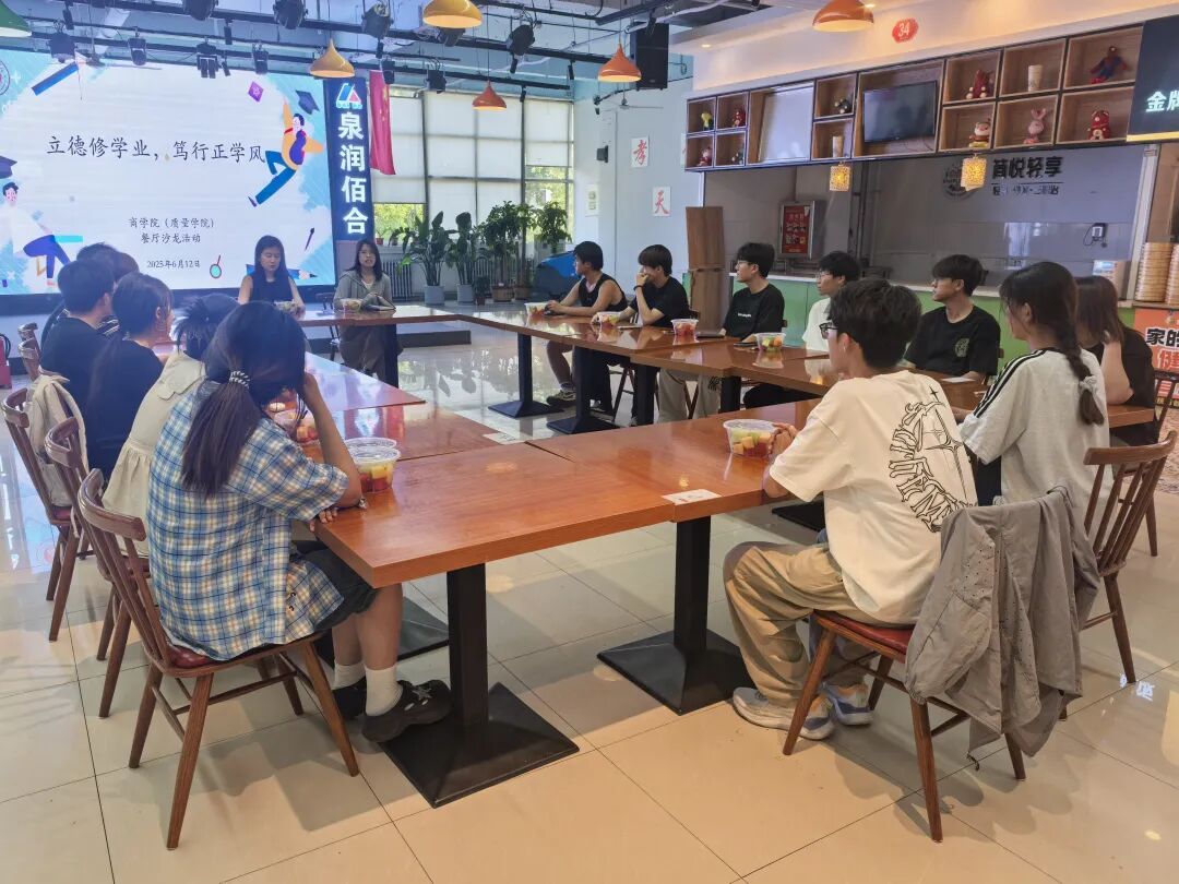 为深化学风建设,营造勤学笃行、积极向上的学习氛围,6月12日,商学院(质量学院)于东校区翰苑餐厅二楼举办“立德修学业 笃行正学风”餐厅沙龙活动。学院辅导员韩亭亭、刘聪睿及2024级各班班团参加活动。