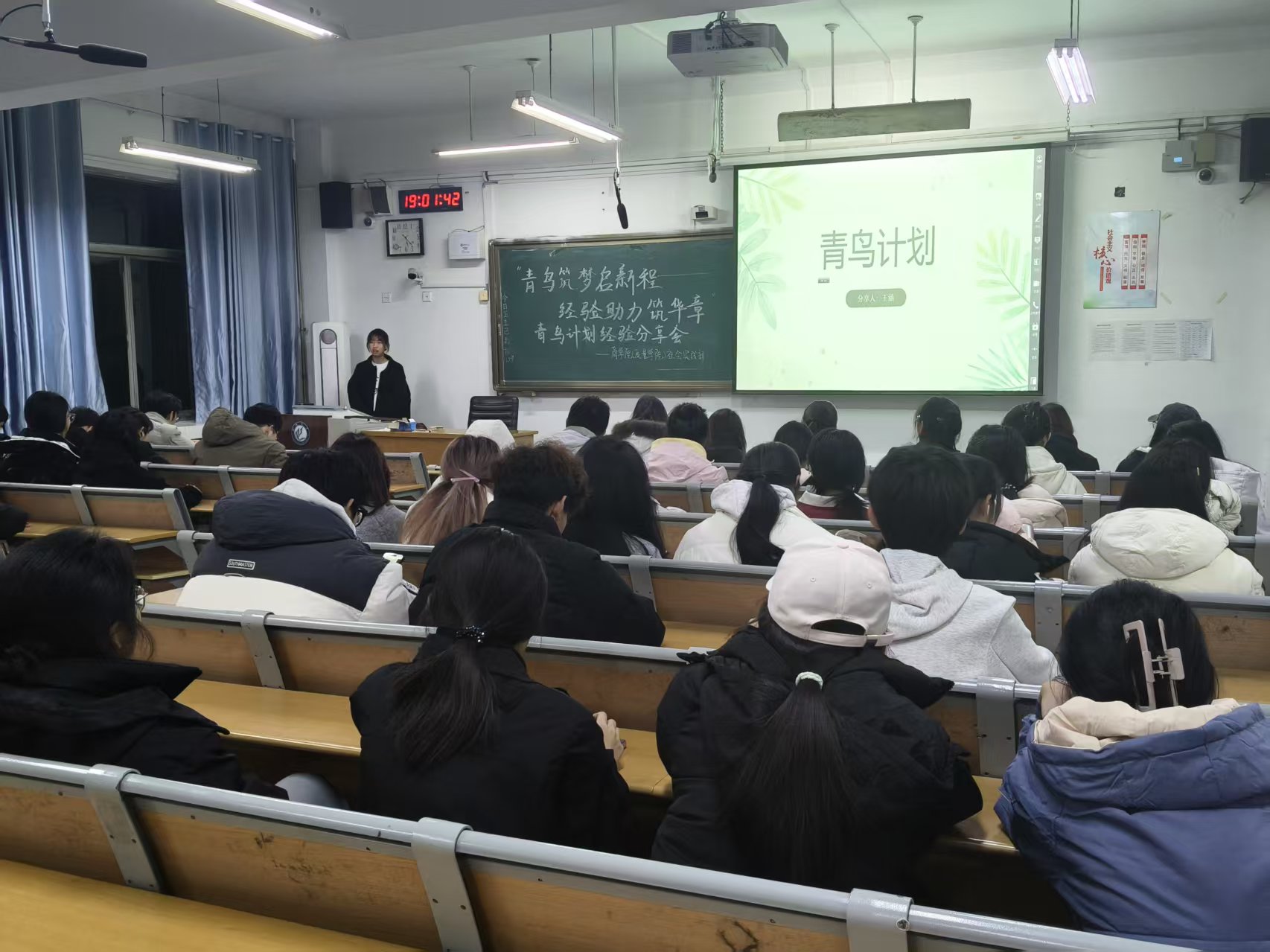 为助力学生适配学业与职业发展,11月19日,商学院(质量学院)于1#305开展“青羽振翅 逐梦新征程”青鸟计划经验分享会,2024级13班王涵、4班翟鹏宇担任主讲人。