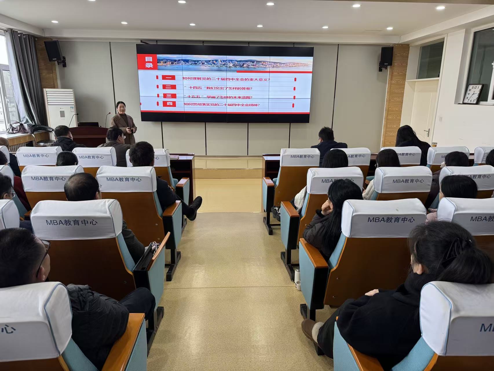 11月24日,商学院(质量学院)在东校区1#707报告厅举行学习贯彻党的二十届四中全会精神宣讲会。宣讲会由学校党的二十届四中全会精神宣讲团成员、马克思主义学院副院长华敏教授主讲,学院全体教职工参加学习。