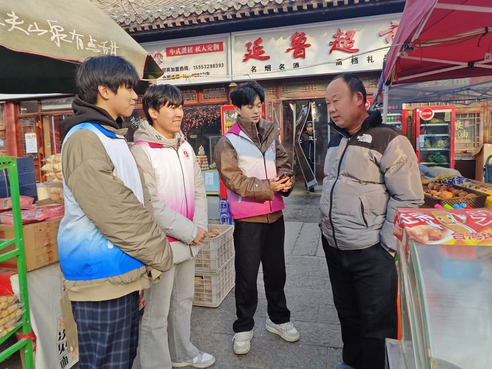 实践队赴东昌府区非遗传承基地,与花饽饽传承人深入交流,了解其从家族百年手作到标准化规模化生产的发展脉络,梳理技艺断层、创新不足等痛点及政府扶持政策。为切实了解聊城市花饽饽非遗发展现状,实践队员走进手作工坊,详细观察传统模具与现代工具的融合方式,学习工坊在坚守传统基础上开发年轻化新品、拓展线上线下市场的有益经验,并积极参与制作体验。在此基础上,实践队员分组在商超开展消费者调研,通过问卷与访谈发现,消费者多将花饽饽视为节庆礼品,对低糖健康、文创联名等创新产品兴趣较高,为非遗市场化探索提供了真实依据。