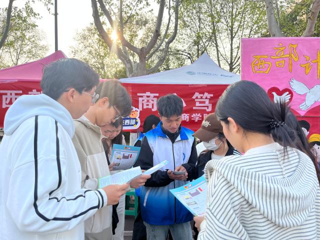 为引导广大青年学子了解西部计划政策、投身基层建设,4月7日,商学院(质量学院)积极参与学校“志赴西部山河,商心笃行致远”2026年西部计划招募咨询会,学院团委书记刘玉华、分管辅导员杜林喆到场指导工作。